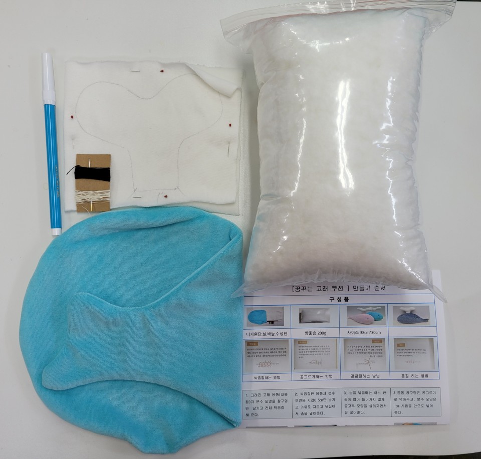 그리고 고래 모양은 솜 넣을 부분만 빼고 박음질 해주셔서 더 좋았구요